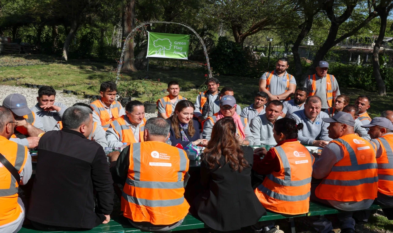 Antalya Büyükşehir Belediyesi Başkan Vekili Büşra Özdemir, Türkiye’nin ilk ve tek Yeşil Bayrak ödülüne layık görülen Atatürk Kültür Parkı’nda görev yapan Park ve Bahçeler ile Temizlik İşleri personeliyle bir araya gelerek, verdikleri emek için teşekkür etti.
