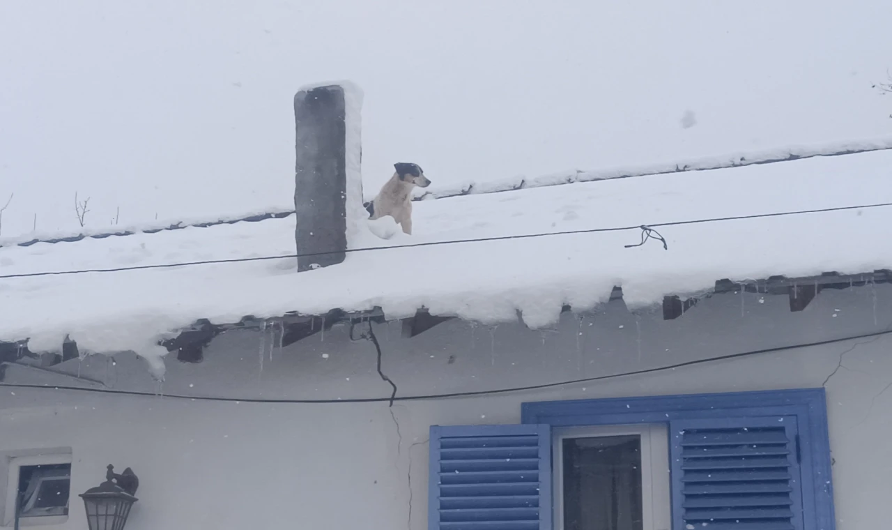 Bilecik'in Pazaryeri ilçesinde yoğun kar yağışı sırasında çatıda mahsur kalan yavru köpek, itfaiye ekiplerinin başarılı operasyonuyla güvenli şekilde indirildi.