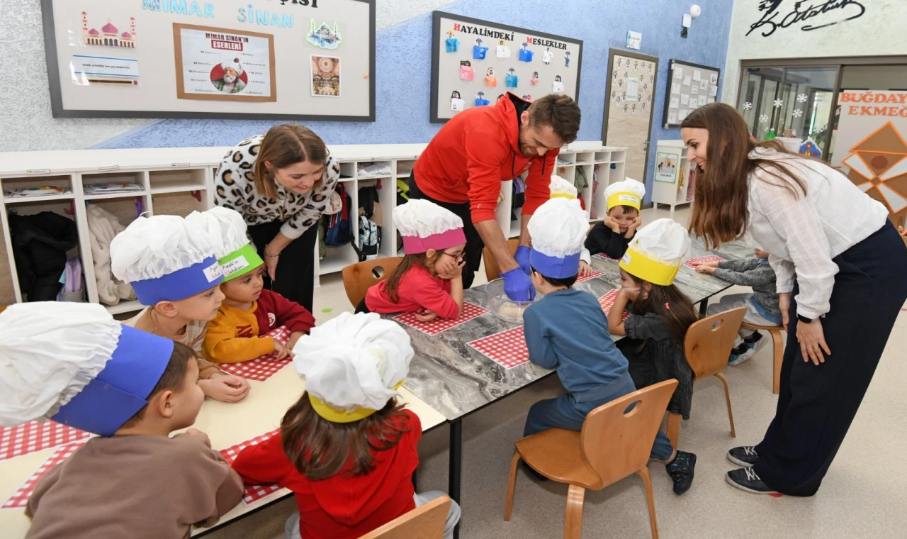 Bursa'da Osmangazi Belediyesi’nin kreşlerinde gerçekleştirilen ‘Meslek Tanıtım Günleri’ kapsamında minik eller, fırıncılığı yakından tanıyarak buğdaydan ekmeğe uzanan yolculuğu kendi elleriyle deneyimledi.