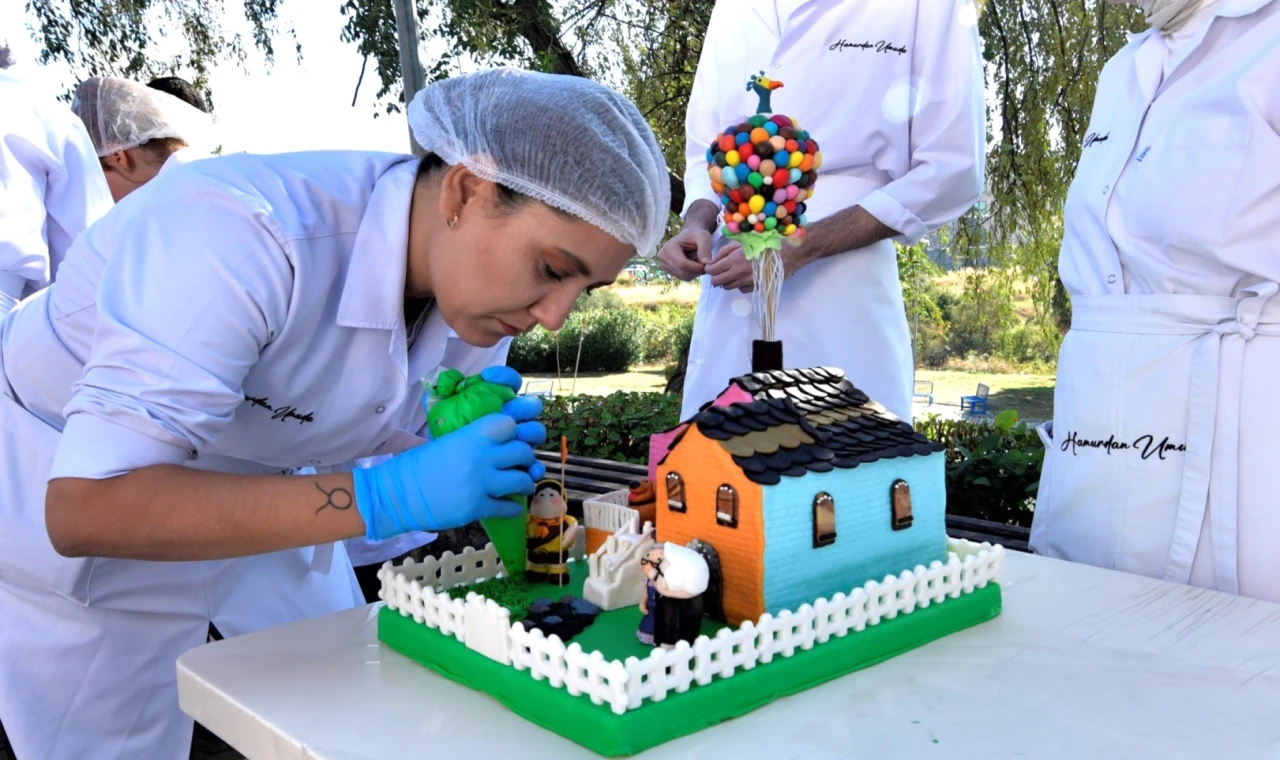 İZMİR (İGFA) - Bornova Belediyesi, İzmir Şekerciler ve Pastacılar Odası ile İzmir Soroptimist Kulübü iş birliğiyle düzenlenen “İstihdam Garantili Pastacılık ve Ekmekçilik Kursu”, Evka-3 Mutfak Atölyesi’nde tamamlandı. Üç ay süren ve toplam 300 saatlik eğitimleri başarıyla bitiren 3’ü erkek 38 kursiyer, kalfalık sertifikalarını renkli bir pasta yarışmasıyla taçlandırdı. Yarışmada “Yukarı Bak” pastası birinciliği, “Çiçek Perileri” ikinci, “Te Fiti” ise üçüncülüğü kazandı.