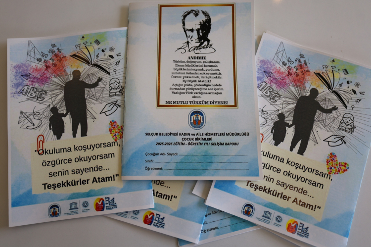 İZMİR (İGFA) - İzmir Efes Selçuk Belediyesi Kadın ve Aile Hizmetleri Müdürlüğü bünyesinde faaliyet gösteren Çocuk Birimleri’nden İsabey Çocuk Bakım Yurdu, 14 Mayıs Şen Çocuk Gelişim Merkezi, Belevi Şen Çocuk Gelişim Merkezi’nde ücretsiz hizmet alan çocuklara Atatürk görselinin yer aldığı ve üzerinde “Okuluma koşuyorsam, özgürce okuyorsam senin sayende… Teşekkürler Atam!” ifadesinin bulunduğu özel gelişim raporu belgesi verildi.