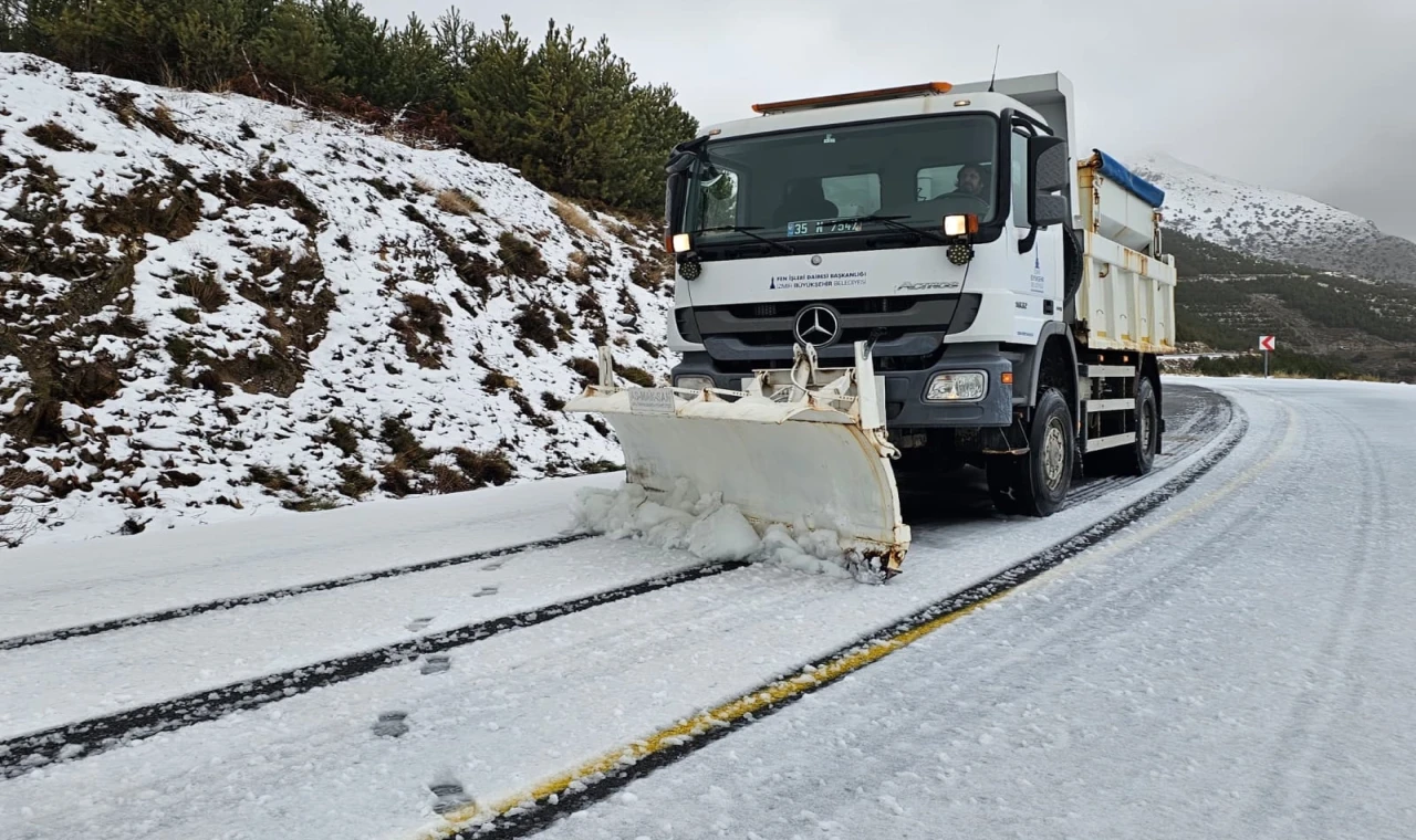 Kar mücadelesi kapsamında ekipler, Ödemiş’in Bozdağ Kayak Merkezi Yolu, Gölcük Mahallesi, Tire’nin Dallık Mahallesi, Karabağlar’ın Kavacık Mahallesi Hava Radar Yolu, Kemalpaşa’nın Beşpınar ve Sütçüler mahalleleri, Spil Dağı Milli Parkı Yolu, Bornova’nın Beşyol, Kayadibi ve Çamiçi mahalleleri, Beydağ Ada Küre Mahallesi ve Ovacık yayla yolunda çalışma yürüttü.
