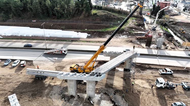 Kuzey Yanyol Dere Köprüsü’nde 13 adet, Başiskele Kavşağı Giriş Köprüsü’nde ise 39 adet olmak üzere toplam 52 adet prekast kirişin montajı tamamlandı. Proje genelinde 9 köprü için toplam 155 adet prekast kiriş kullanılacak.