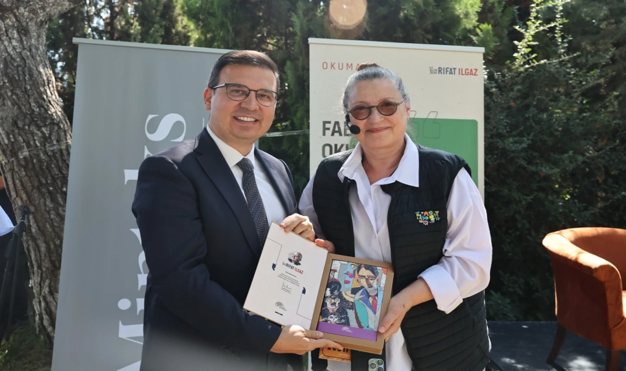 BURSA (İGFA) - Bursa Nilüfer Belediyesi’nin “2025 Yılın Yazarı Rıfat Ilgaz” etkinliklerinden “Fabrika Okumaları” söyleşisi Minteks’te yapıldı. Tiyatro ve sinema oyuncusu Vahide Perçin’in katıldığı söyleşi, fabrika bahçesinde gerçekleşti. Programı Nilüfer Belediye Başkan Yardımcıları Okan Şahin ve Emre Karagöz, Nilüfer Belediye Başkanı Şadi Özdemir’in eşi Nuray Özdemir, oyuncunun kızı Alize Gördüm ve oyuncu Altan Gördüm, Minteks Grup Başkanı Özkan İrman adına İhsan İrman, Minteks Yönetim Kurulu Üyeleri Irmak İrman Gazioğlu ve Arda İmran ile fabrika çalışanları izledi.